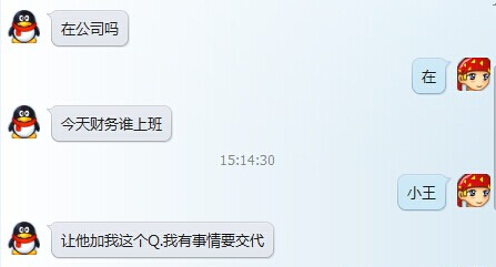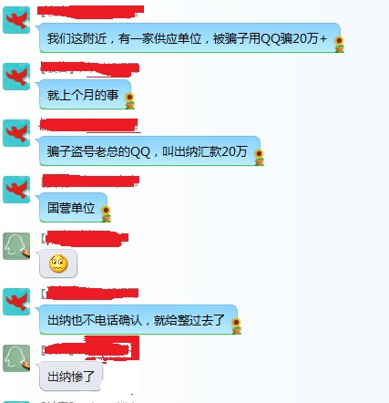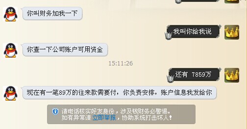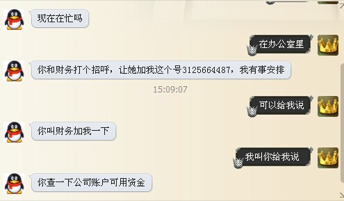 于是就加了那個(gè)的QQ,騙子一本正經(jīng)的冒充老板,問財(cái)務(wù)誰上班。