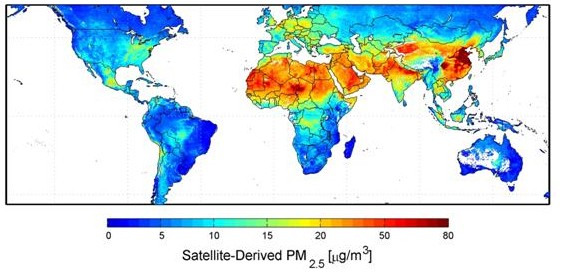 世界衛(wèi)生組織建議每立方米呼吸的空氣中,PM-2.5顆粒不大于10微克。2010年6月加拿大學者Aaron vanDonkelaar 和Randall Martin利用NASA的衛(wèi)星信息,采用計算機模型繪制了全球的PM-2.5分布圖(2001-2006年的平均值)。雖然衛(wèi)星探測技術無法準確監(jiān)測,存在很多監(jiān)測難題,例如無法很好的識別PM-2.5的近地濃度和高空濃度,云層的吸收,地面狀態(tài)(明亮的部分,如海洋,沙漠,城市)對測量的影響。但是,在這幅監(jiān)測圖上,仍然可以發(fā)現(xiàn)超過80%的世界人口呼吸著污染的空氣。由此可見,PM-2.5的地面監(jiān)測聯(lián)網對于人類的健康勢在必行。